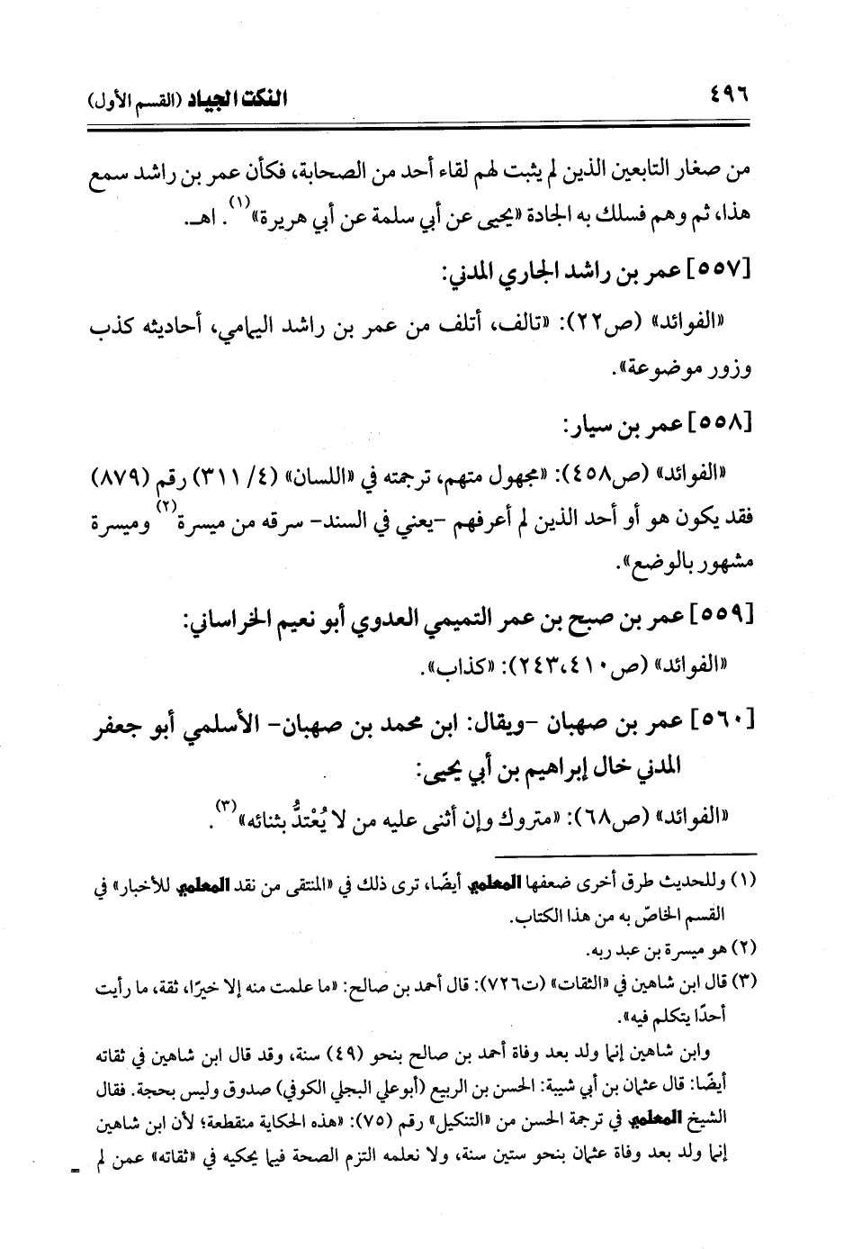 وابن شاهين إنما ولد بعد وفاة أحمد بن صالح بنحو (49) سنة، وقد قال ابن شاهين في ثقاته أيضًا: قال عثمان بن أبي شيبة: الحسن بن الربيع (أبو علي البجلي الكوفي) صدوق وليس بحجة. فقال الشيخ المعلمي في ترجمة الحسن من "التنكيل" رقم (75): "هذه الحكاية منقطعة؛ لأن ابن شاهين إنما ولد بعد وفاة عثمان بنحو ستين سنة، ولا نعلمه التزم الصحة فيما يحكيه في "ثقاته" عمن لم =