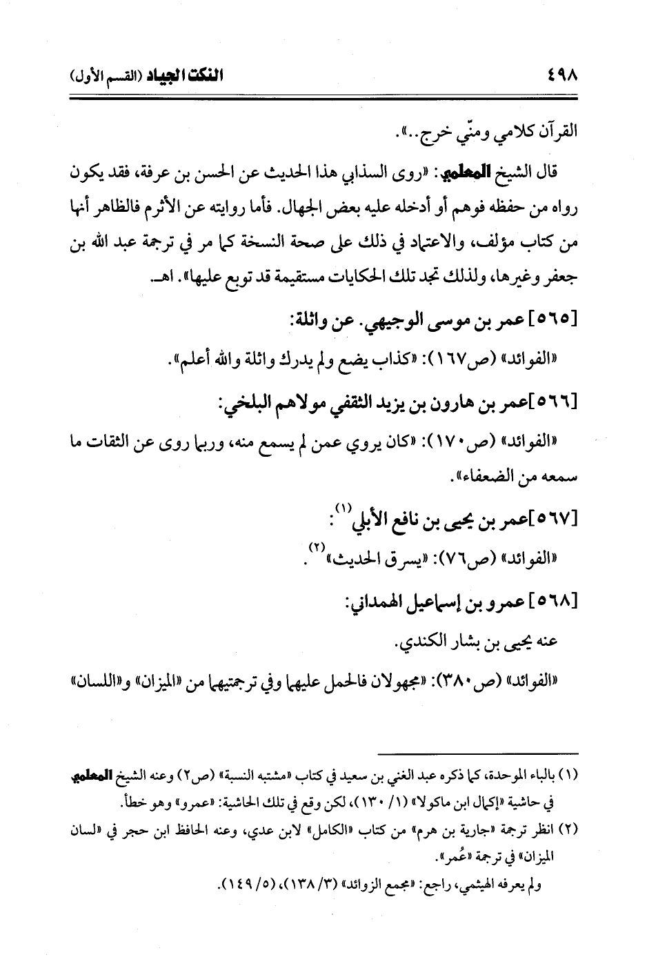 (¬2) انظر ترجمة "جارية بن هرم" من كتاب "الكامل" لابن عدي، وعنه الحافظ ابن حجر في "لسان الميزان" في ترجمة "عُمر".