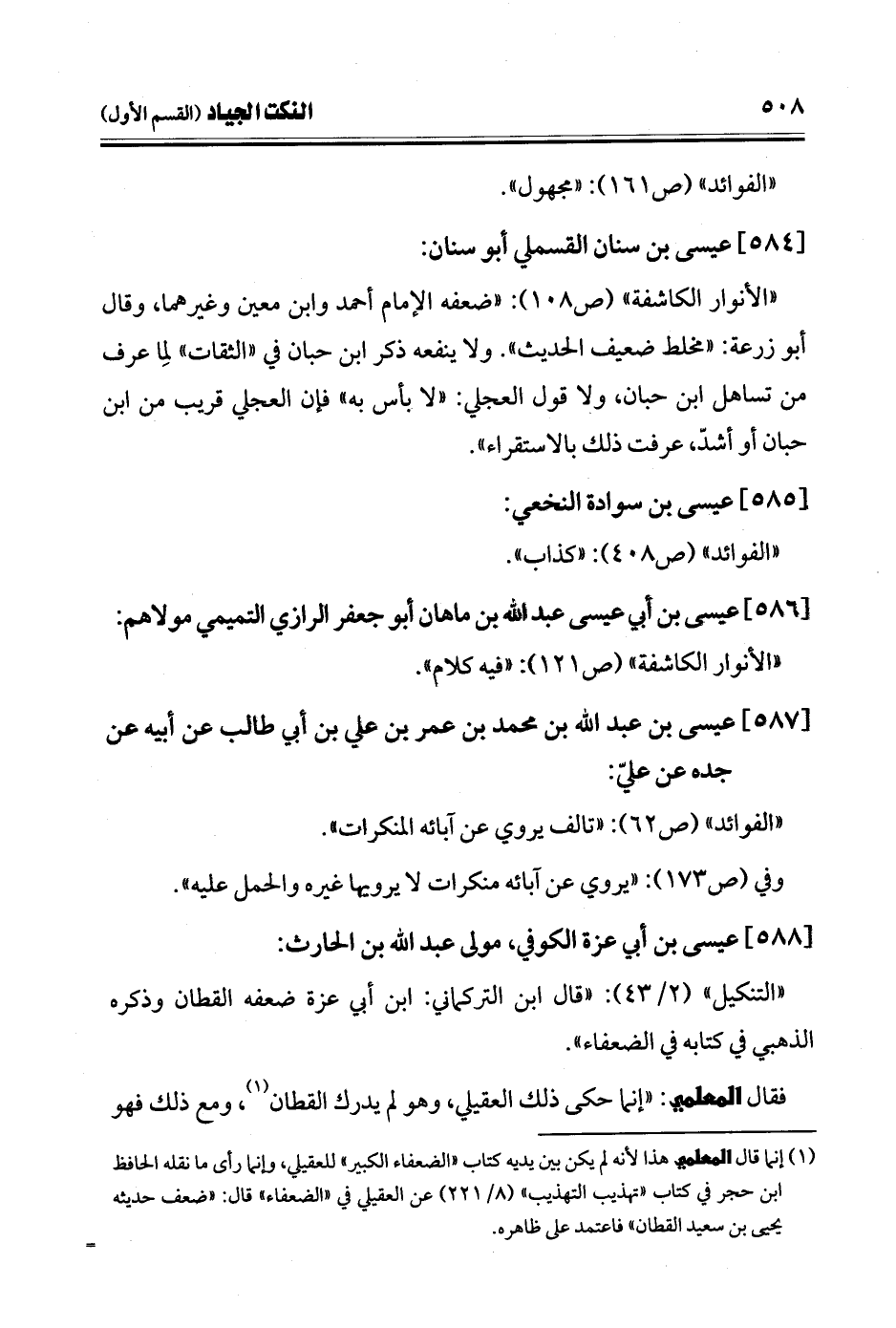 "الأنوار الكاشفة" (ص 121): "فيه كلام".