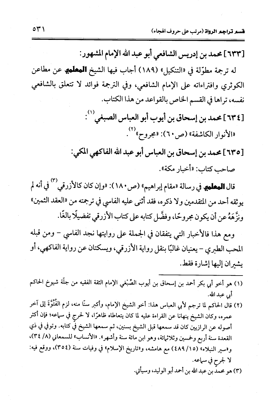 قال المعلمي في رسالة "مقام إبراهيم" (ص 180): "وإن كان كالأزرقي (¬3) في أنه لم يوثقه أحد من المتقدمين ولا ذكره، فقد أثنى عليه الفاسي في ترجمته من "العقد الثمين" ونزَّهَهُ عن أن يكون مجروحًا، وفضَّل كتابه على كتاب الأزرقي تفضيلًا بالغًا.