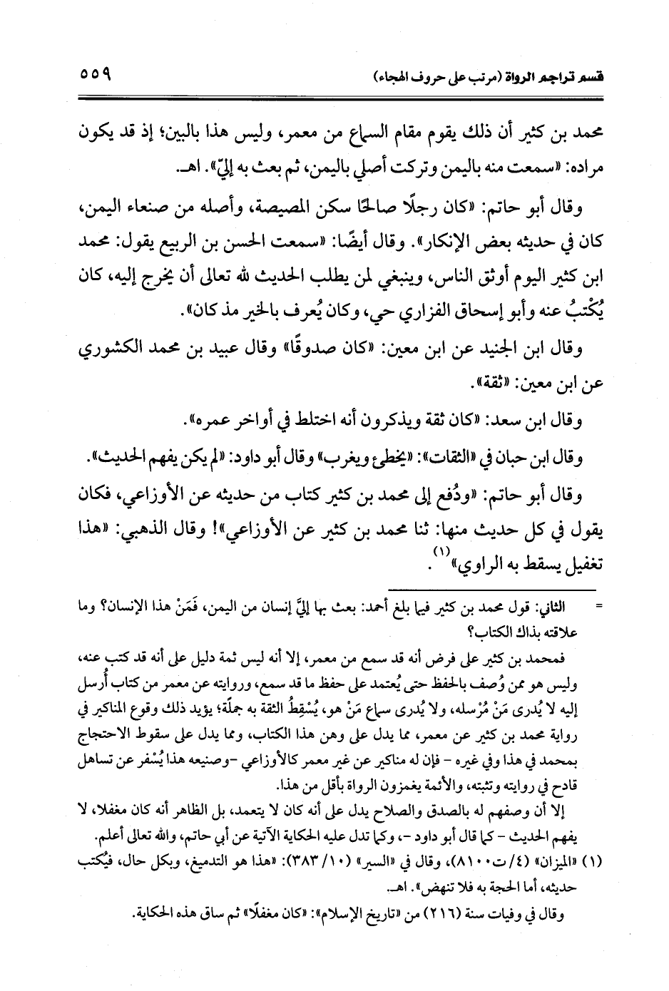 وقال أبو حاتم: "ودُفع إلى محمد بن كثير كتاب من حديثه عن الأوزاعي، فكان يقول في كل حديث منها: ثنا محمد بن كثير عن الأوزاعي"! وقال الذهبي: "هذا تغفيل يسقط به الراوي" (¬1).