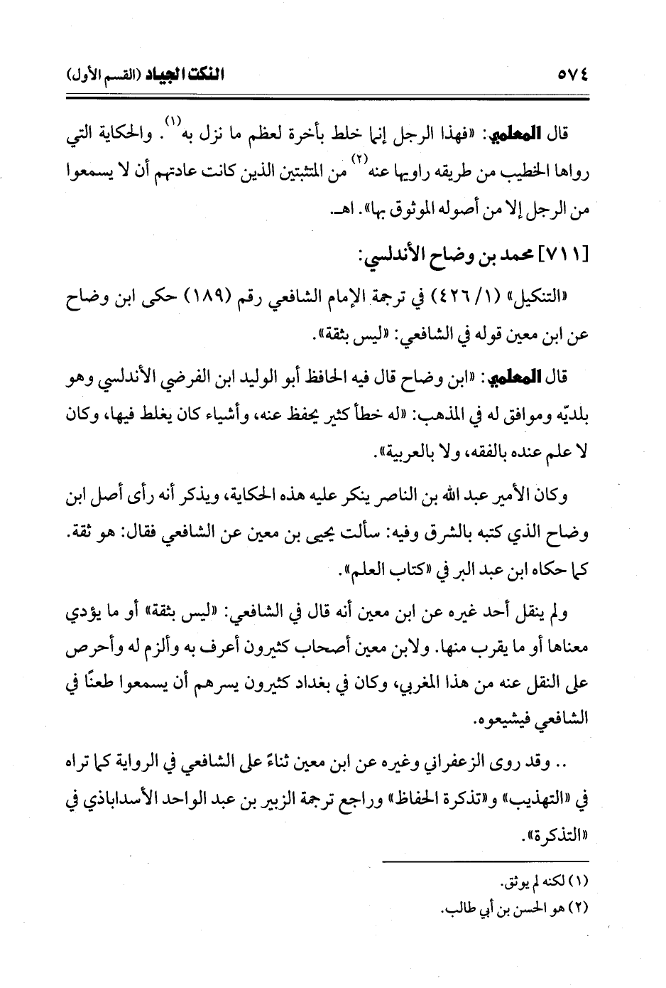 .. وقد روى الزعفراني وغيره عن ابن معين ثناءً على الشافعي في الرواية كما تراه في "التهذيب" و"تذكرة الحفاظ" وراجع ترجمة الزبير بن عبد الواحد الأسداباذي في "التذكرة".