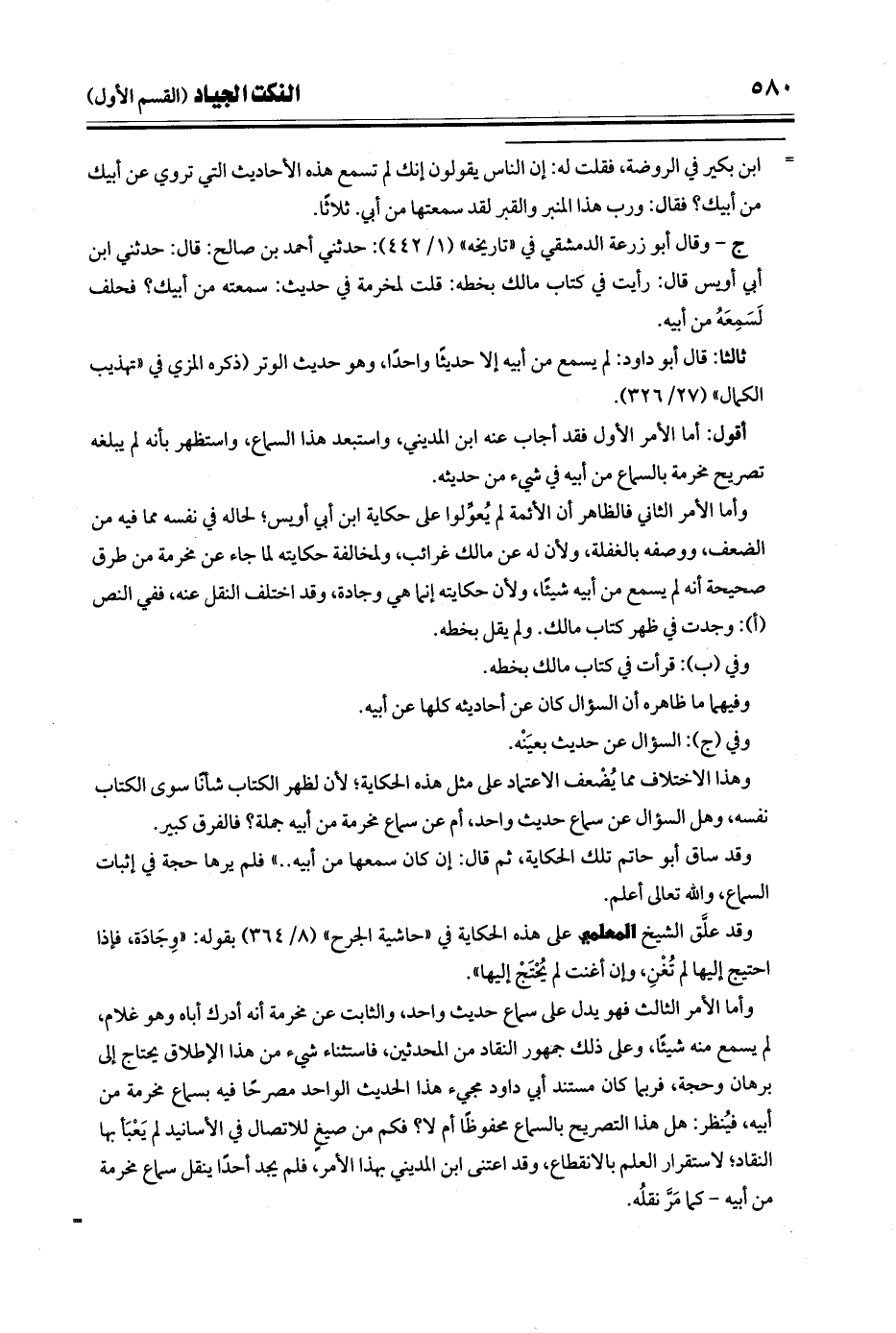 وهذا الاختلاف مما يُضْعف الاعتماد على مثل هذه الحكاية؛ لأن لظهر الكتاب شأنًا سوى الكتاب نفسه, وهل السؤال عن سماع حديث واحد، أم عن سماع مخرمة من أبيه جملة؟ فالفرق كبير.