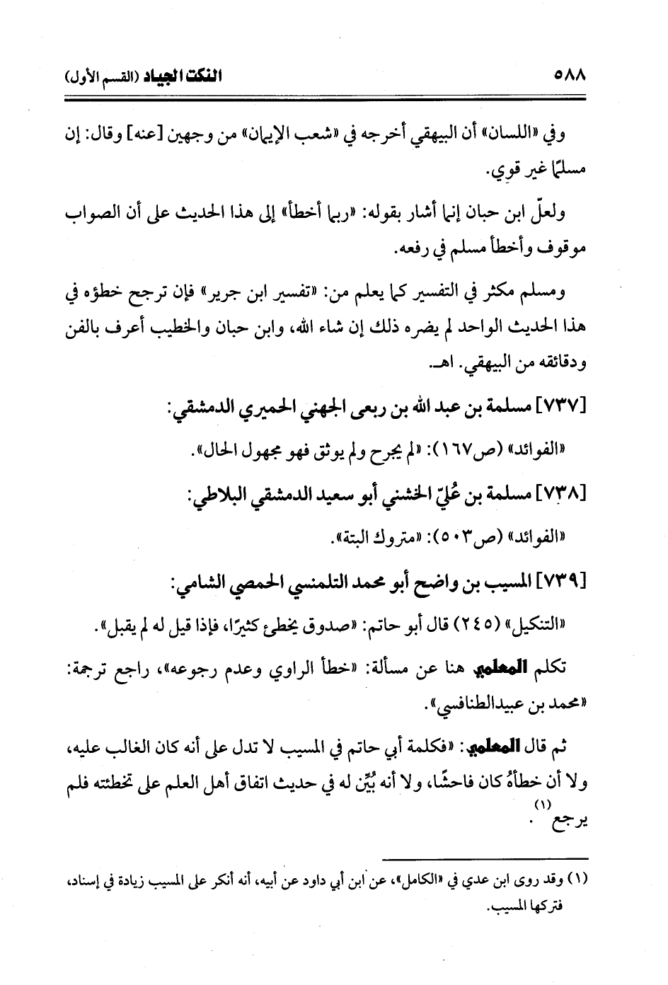 تكلم المعلمي هنا عن مسألة: "خطأ الراوي وعدم رجوعه، راجع ترجمة: "محمد بن عبيد الطنافسي".