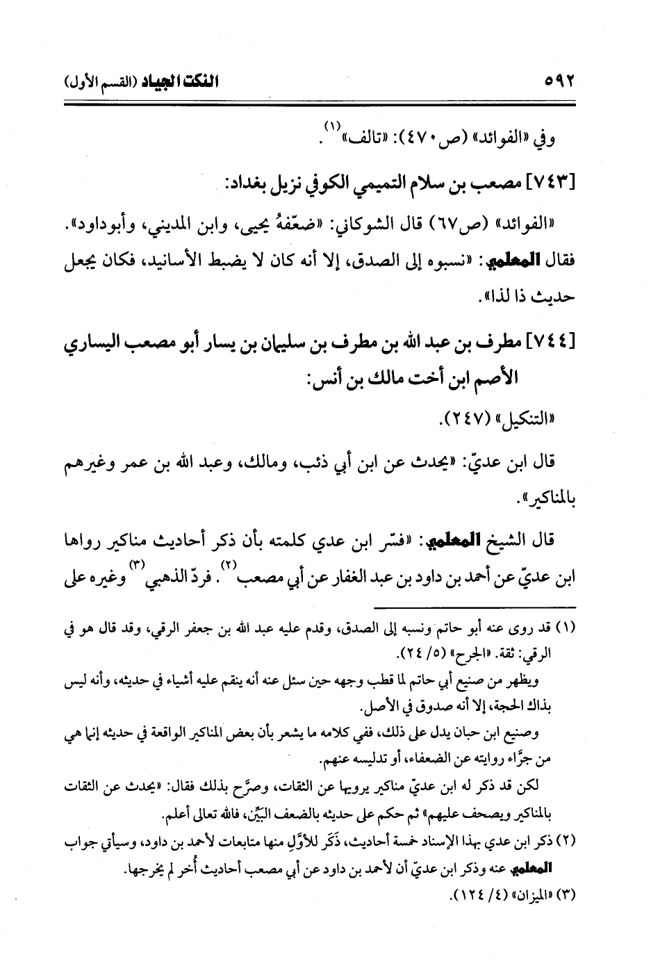 قال الشيخ المعلمي: "فسّر ابن عدي كلمته بان ذكر أحاديث مناكير رواها ابن عديّ عن أحمد بن داود بن عبد الغفار عن أبي مصعب (¬2). فردّ الذهبي (¬3) وغيره على
