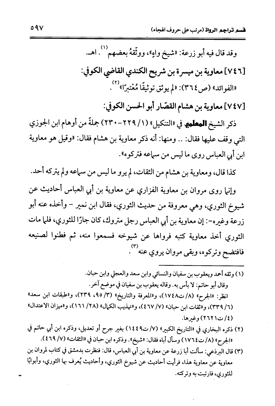 ذكر الشيخ المعلمي في "التنكيل" (1/ 229 - 230) جملةً من أوهام ابن الجوزي التي وقف عليها فقال: .. ومنها: أنه ذكر معاوية بن هشام فقال: "وقيل هو معاوية ابن أبي العباس روى ما ليس من سماعه فتركوه".