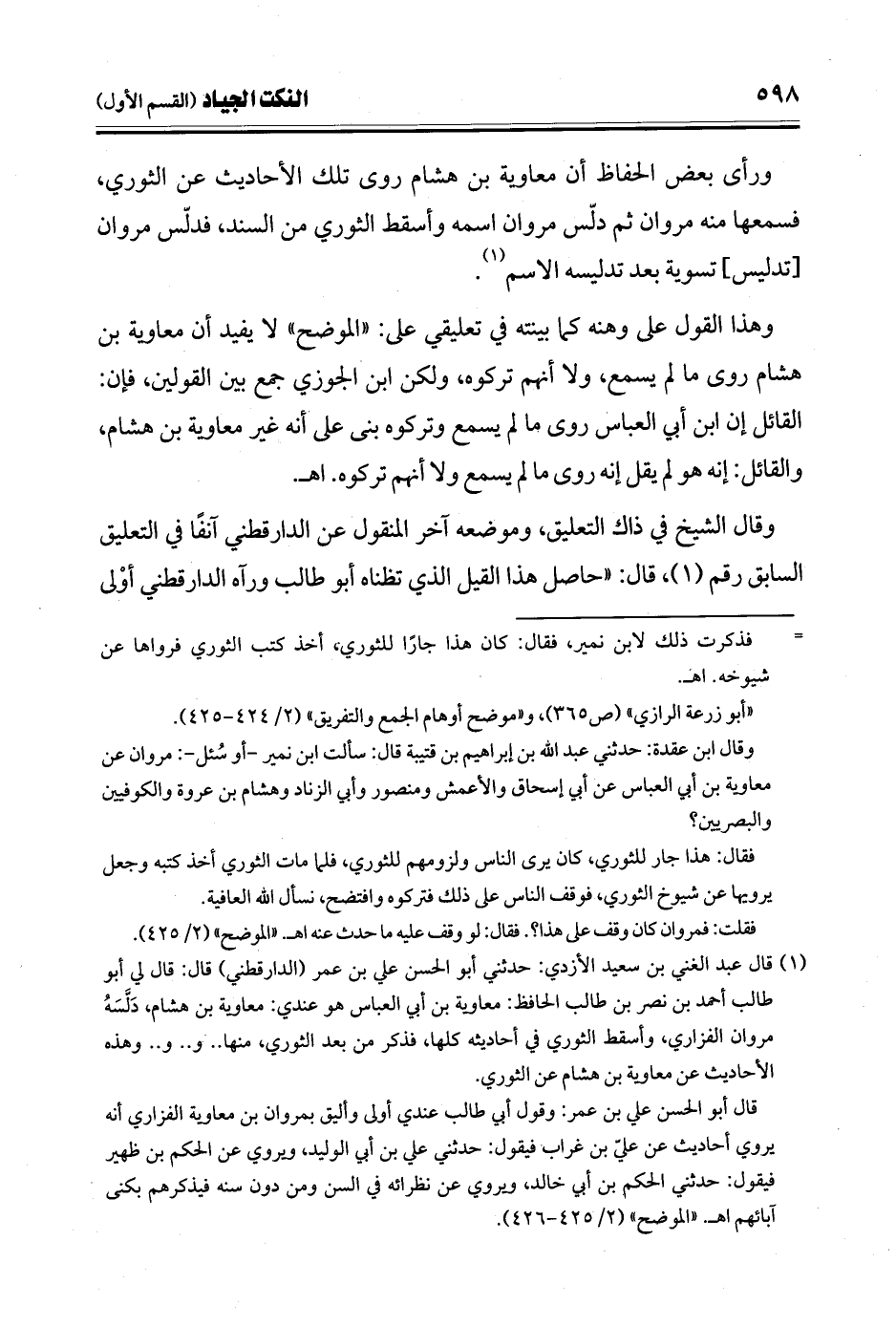 قال أبو الحسن علي بن عمر: وقول أبو طالب عندي أولى وأليق بمروان بن معاوية الفزاري أنه يروي أحاديث عن علي بن غراب فيقول: حدثني علي بن أبي الوليد، ويروي عن الحكم بن ظهير فيقول: حدثني الحكم بن أبي خالد، ويروي عن نظرائه في السن ومن دون سنه فيذكرهم بكنى آبائهم اهـ "الموضح" (2/ 425 - 426).