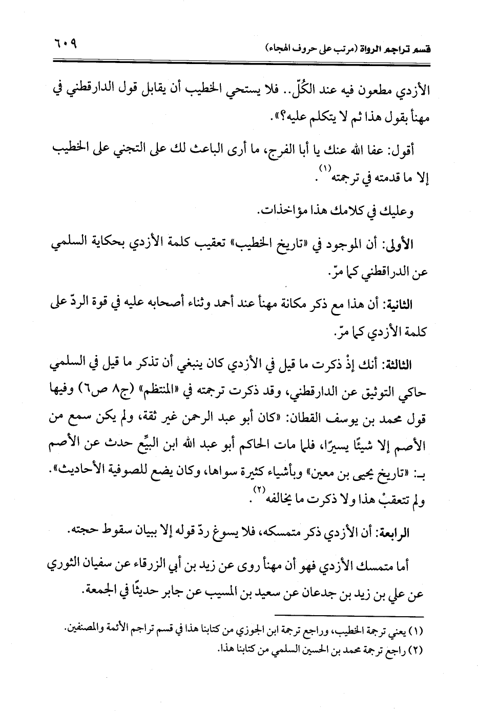 الأولى: أن الموجود في "تاريخ الخطيب" تعقيب كلمة الأزدي بحكاية السلمي عن الدراقطني كما مرّ.