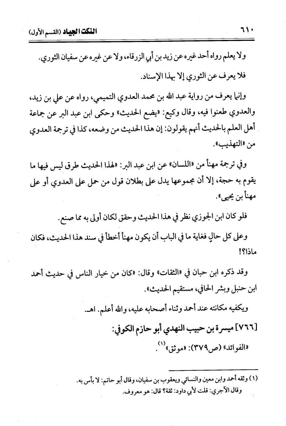 وفي ترجمة مهنأ من "اللسان" عن ابن عبد البر: "لهذا الحديث طرق ليس فيها ما يقوم به حجة، إلا أن مجموعها يدل على بطلان قول من حمل على العدوي أو على مهنأ بن يحيى".