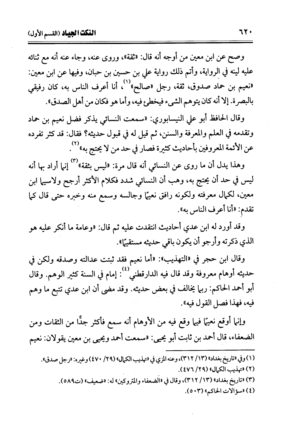 وقال ابن حجر في "التهذيب": "أما نعيم فقد ثبتت عدالته وصدقه ولكن في حديثه أوهام معروفة وقد قال فيه الدارقطني (¬4): إمام في السنة كثير الوهم. وقال أبو أحمد الحاكم: ربما يخالف في بعض حديثه. وقد مضى أن ابن عدي تتبع ما وهم فيه، فهذا فصل القول فيه".