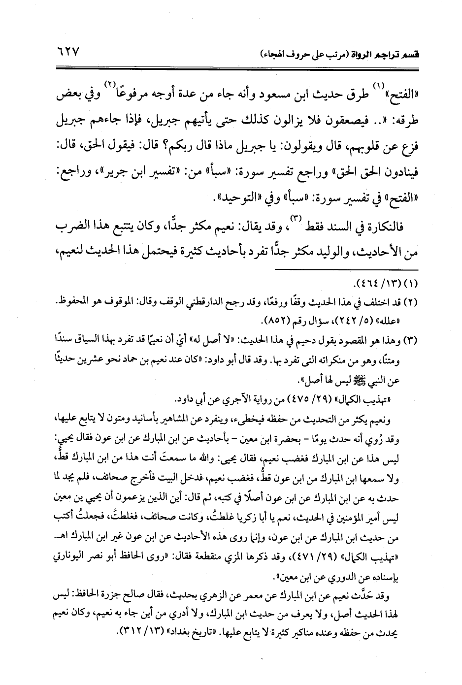 (¬3) وهذا هو المقصود بقول دحيم في هذا الحديث: "لا أصل له" أيْ أن نعيمًا قد تفرد بهذا السياق سندًا ومتنًا، وهو من منكراته التى تفرد بها. وقد قال أبو داود: "كان عند نعيم بن حماد نحو عشرين حديثًا عن النبي -صلى الله عليه وسلم- ليس لها أصل".
