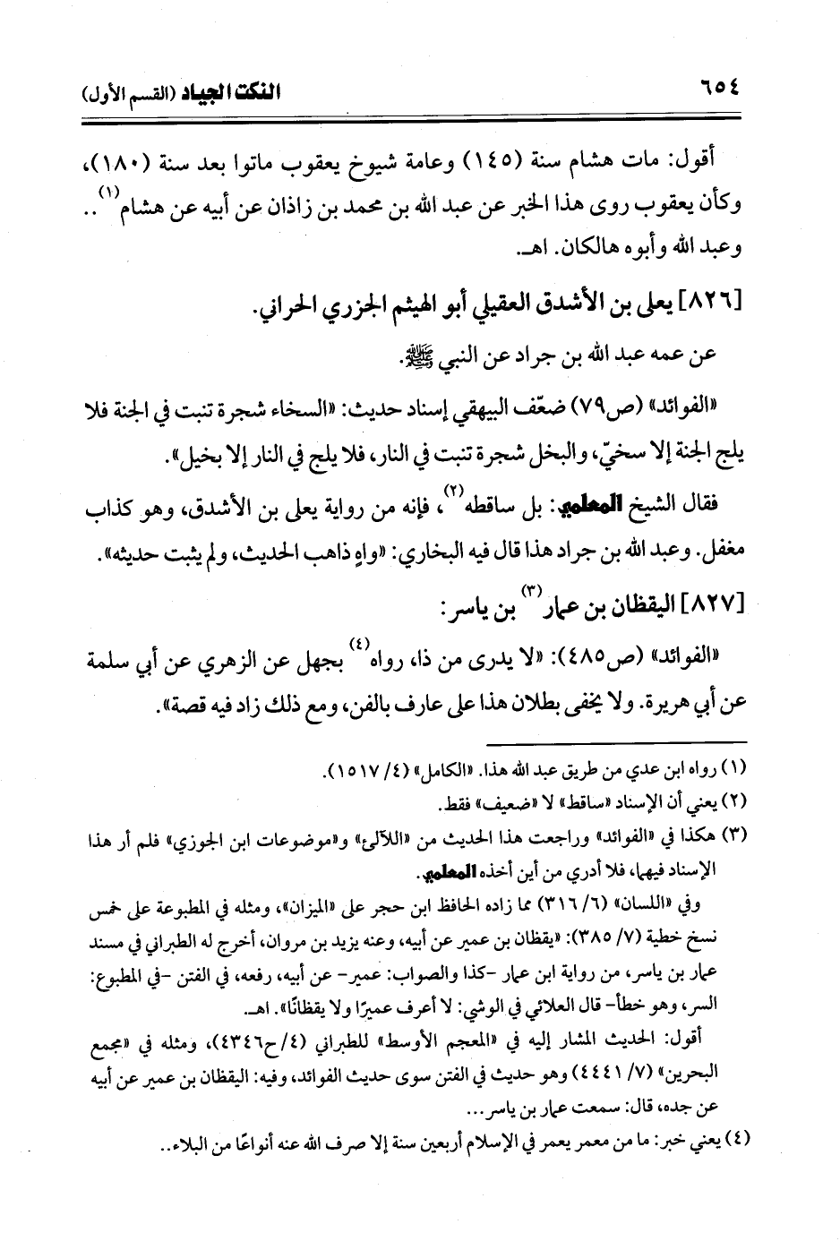 فقال الشيخ للمعلمي: بل ساقطه (¬2)، فإنه من رواية يعلى بن الأشدق، وهو كذاب مغفل. وعبد الله بن جراد هذا قال فيه البخاري: "واهٍ ذاهب الحديث، ولم يثبت حديثه".