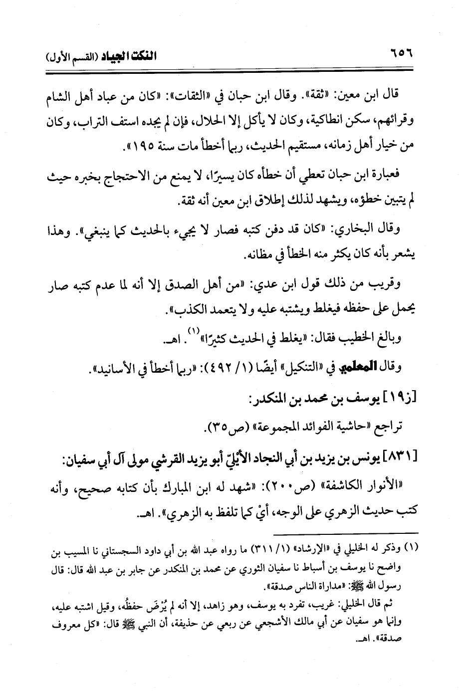 "الأنوار الكاشفة" (ص 200): "شهد له ابن المبارك بأن كتابه صحيح، وأنه كتب حديث الزهري على الوجه، أي كما تلفظ به الزهري". اهـ.
