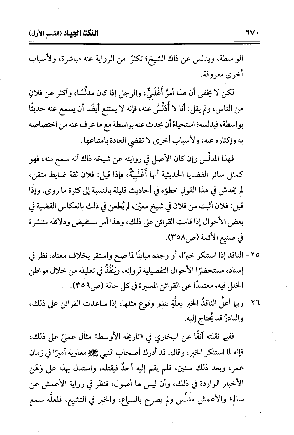 26 - ربما أعلَّ الناقدُ الخبر بعلَّةٍ يندر وقوع مثلها، إذا ساعدت القرائن على ذلك، والنادرُ قد يُحتاج إليه.