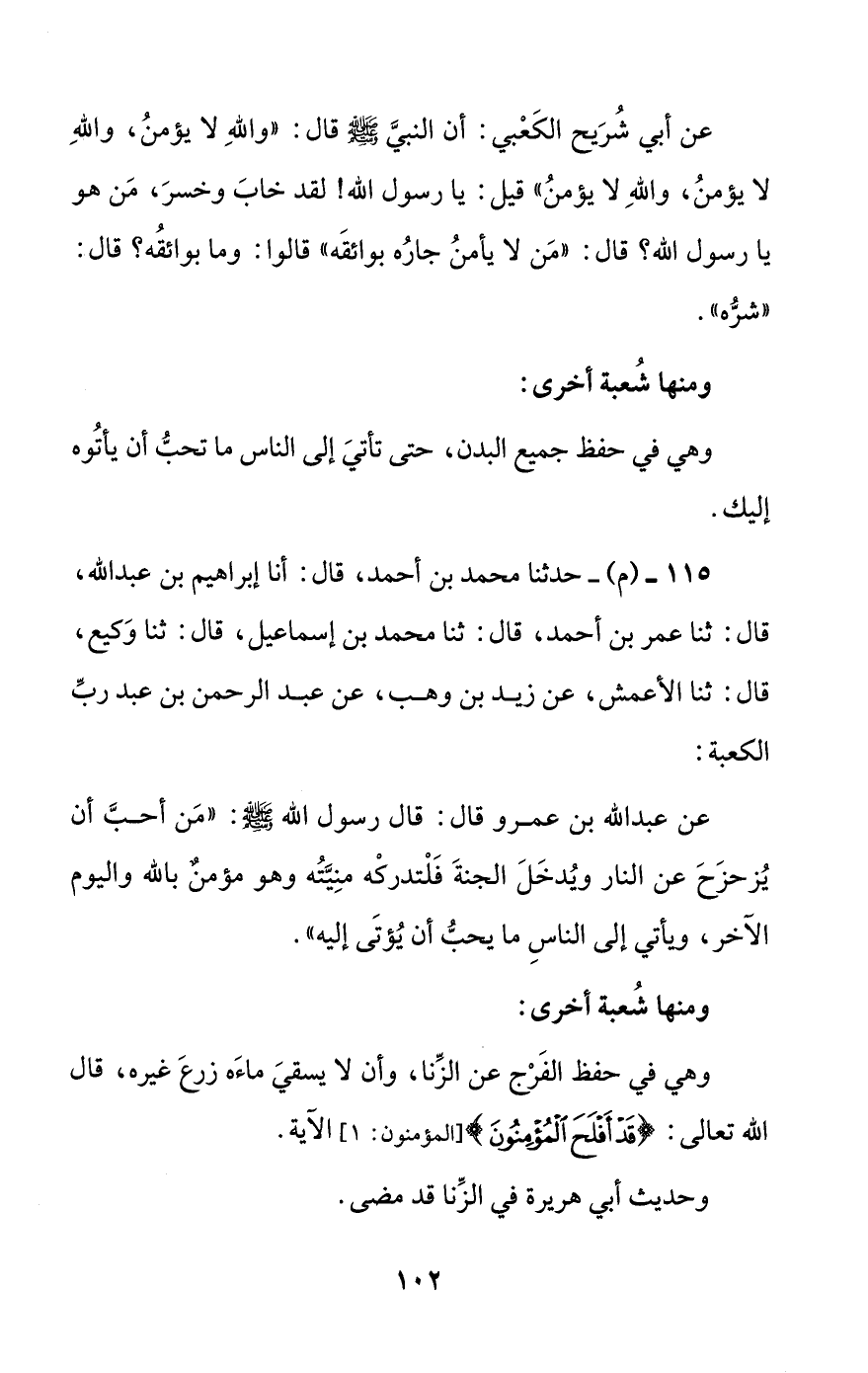115 - (م) - حدثنا محمد بن أحمد، قال: أنا إبراهيم بن عبد الله، قال: ثنا عمر بن أحمد، قال: ثنا محمد بن إسماعيل، قال: ثنا وكيع، قال: ثنا الأعمش، عن زيد بن وهب، عن عبد الرحمن بن عبد رب الكعبة: