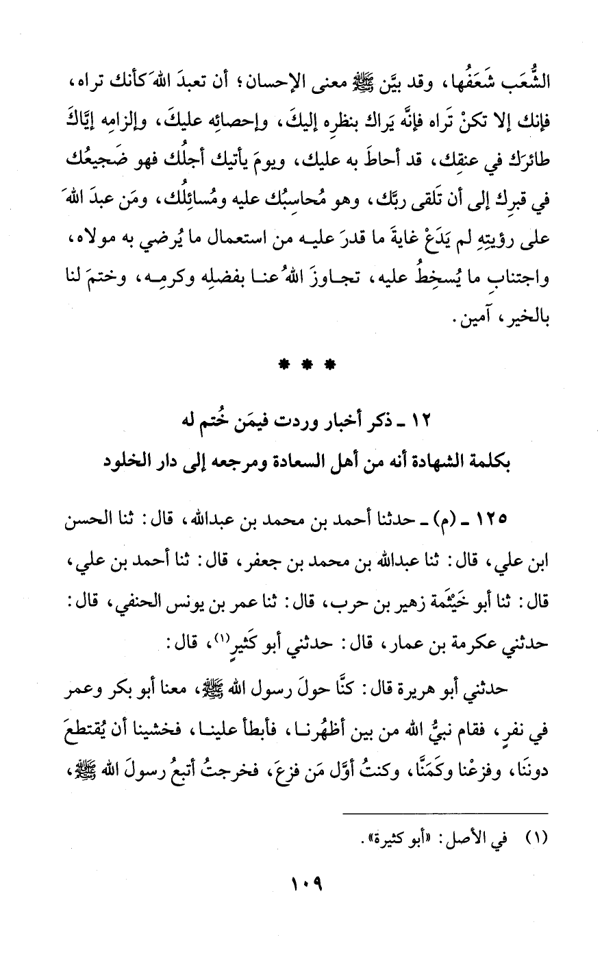 [12] ذكر أخبار وردت فيمن ختم له بكلمة الشهادة أنه من أهل السعادة ومرجعه إلى دار الخلود