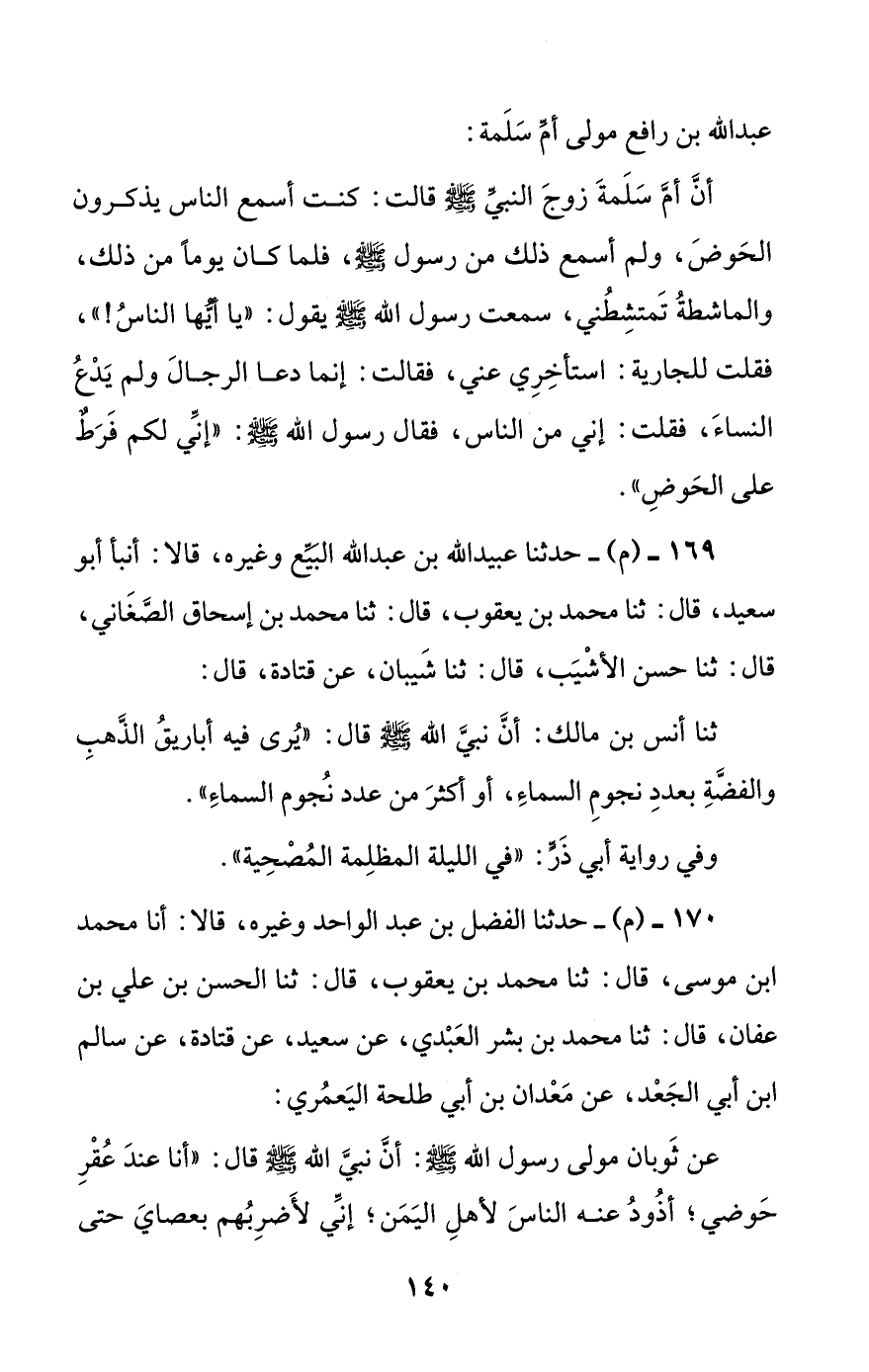 169 - (م) - حدثنا عبيد الله بن عبد الله البيع وغيره، قالا: أنبأ أبو سعيد، قال: ثنا محمد بن يعقوب، قال: ثنا محمد بن إسحاق الصغاني، قال: ثنا حسن الأشيب، قال: ثنا شيبان، عن قتادة، قال:
