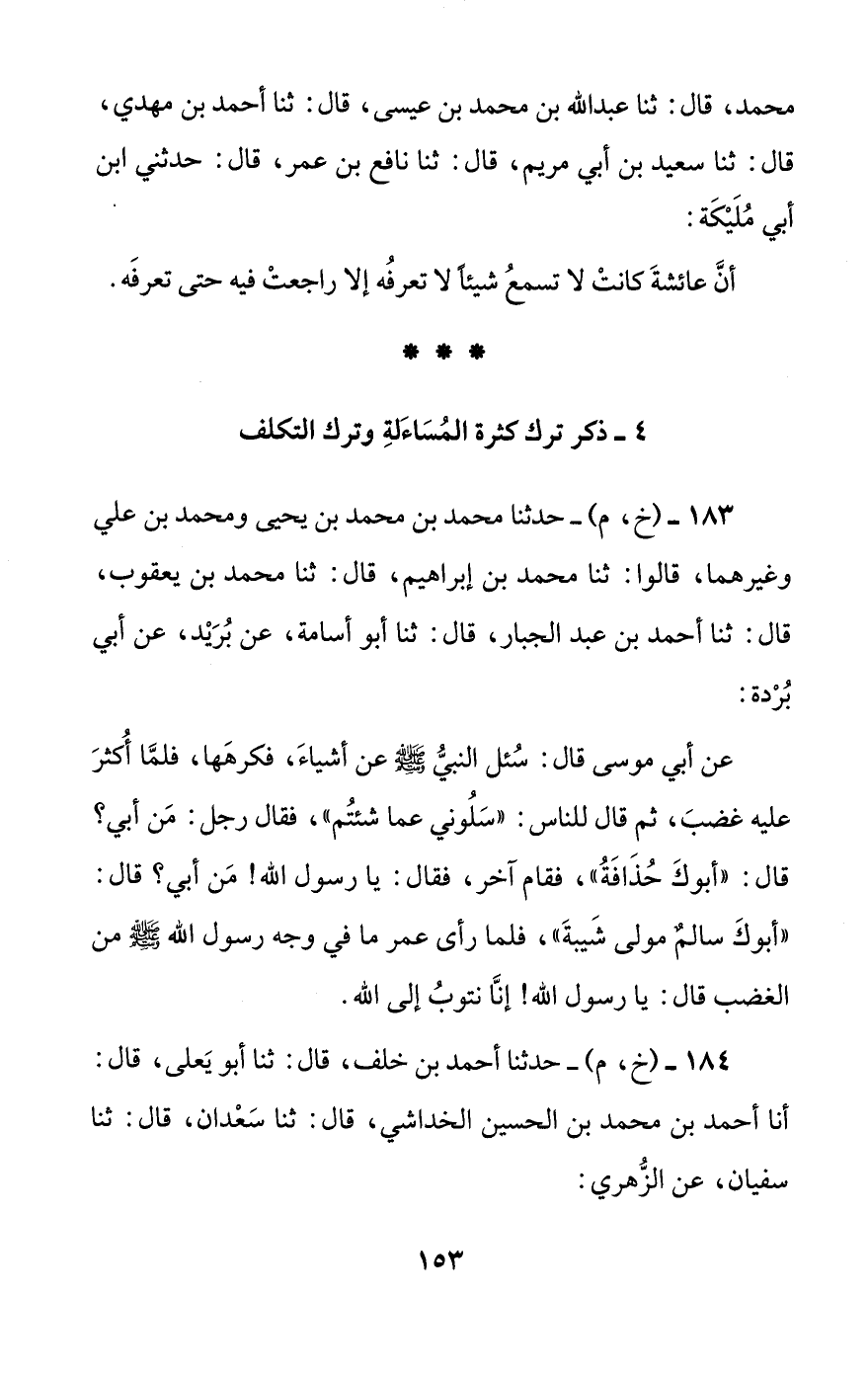 [4] ذكر ترك كثرة المساءلة وترك التكلف