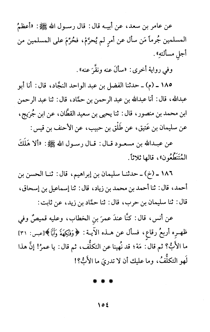 عن عبد الله بن مسعود قال: قال رسول الله صلى الله عليه وسلم: ((ألا هلك المتنطعون))، قالها ثلاثا.