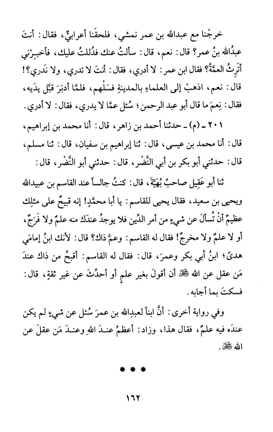 201 - (م) - حدثنا أحمد بن زاهر، قال: أنا محمد بن إبراهيم، قال: أنا محمد بن عيسى، قال: ثنا إبراهيم بن سفيان، قال: ثنا مسلم، قال: حدثني أبو بكر بن أبي النضر، قال: حدثني أبو النضر، قال: