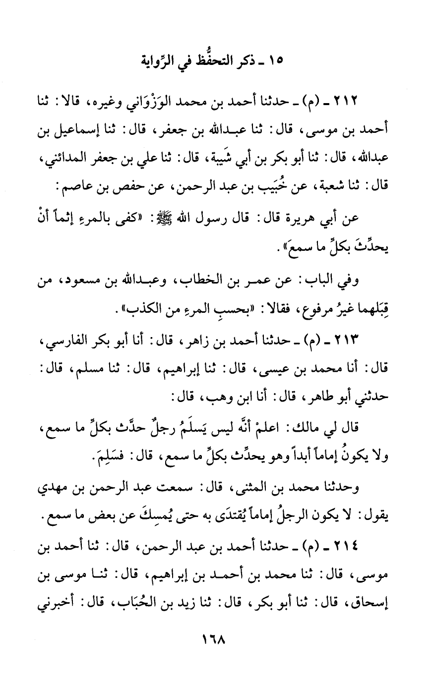 213 - (م) - حدثنا أحمد بن زاهر، قال: أنا أبو بكر الفارسي، قال: أنا محمد بن عيسى، قال: ثنا إبراهيم، قال: ثنا مسلم، قال: حدثني أبو طاهر، قال: أنا ابن وهب، قال: