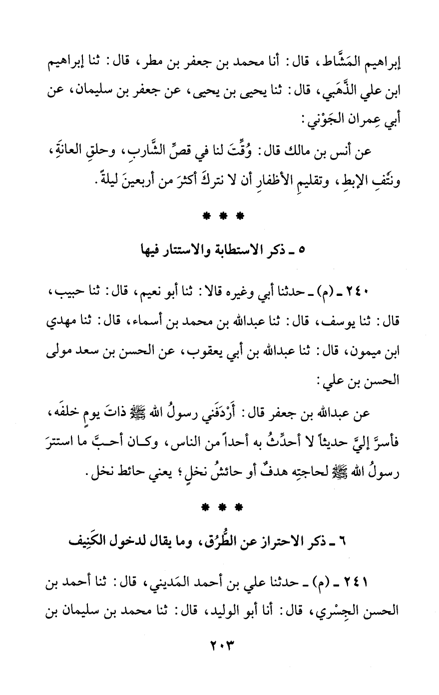 [6] ذكر الاحتراز عن الطرق، وما يقال لدخول الكنيف