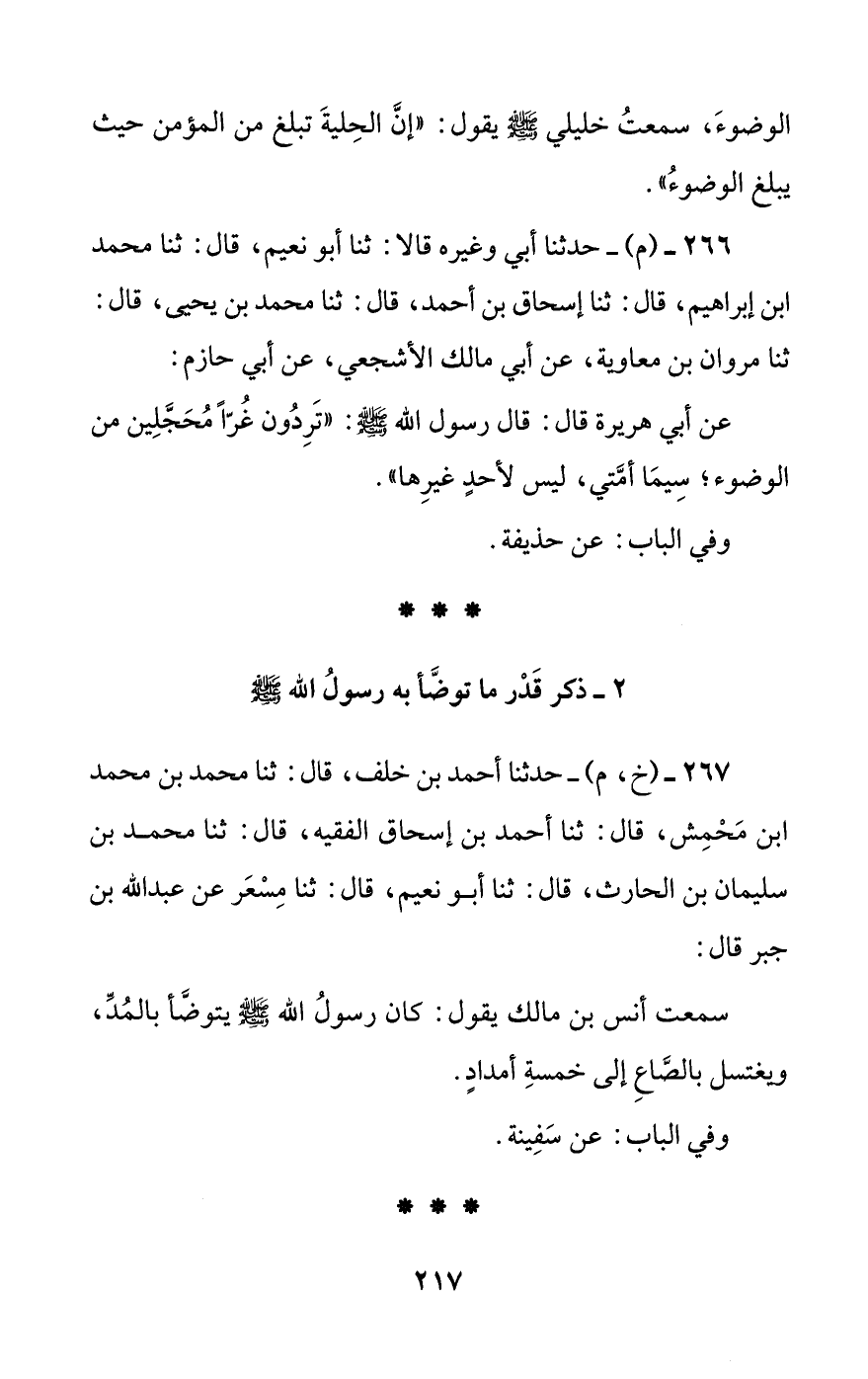 267 - (خ، م) - حدثنا أحمد بن خلف، قال: ثنا محمد بن محمد بن محمش، قال: ثنا أحمد بن إسحاق الفقيه، قال: ثنا محمد بن سليمان بن الحارث، قال: ثنا أبو نعيم، قال: ثنا مسعر عن عبد الله بن جبر قال: