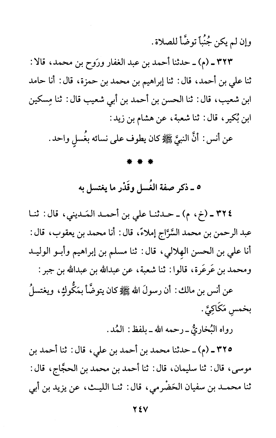 324 - (خ، م) - حدثنا علي بن أحمد المديني، قال: ثنا عبد الرحمن بن محمد السراج إملاء، قال: أنا محمد بن يعقوب، قال: أنا علي بن الحسن الهلالي، قال: ثنا مسلم بن إبراهيم وأبو الوليد ومحمد بن عرعرة، قالوا: ثنا شعبة، عن عبد الله بن عبد الله بن جبر: