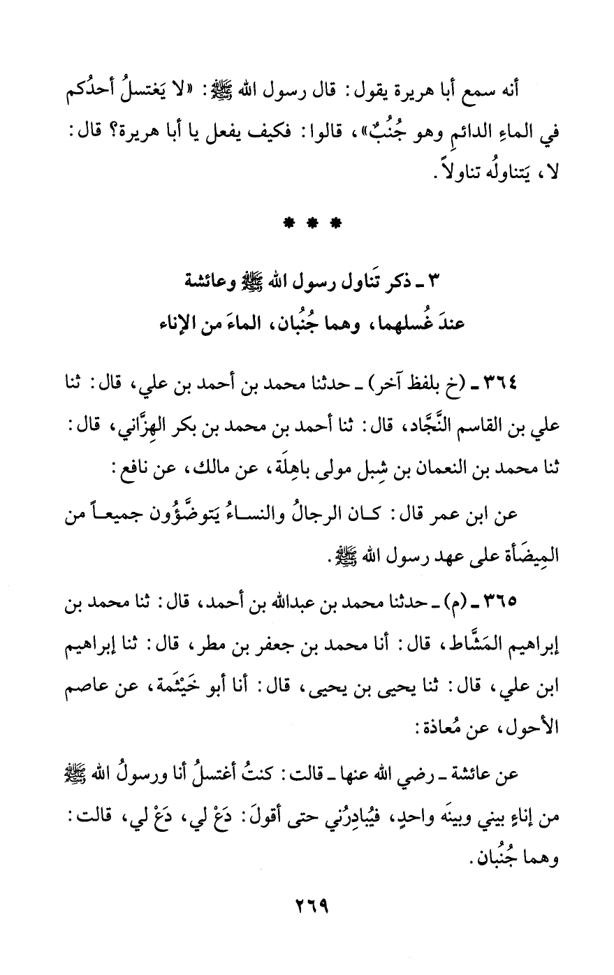 365 - (م) - حدثنا محمد بن عبد الله بن أحمد، قال: ثنا محمد بن إبراهيم المشاط، قال: أنا محمد بن جعفر بن مطر، قال: ثنا إبراهيم بن علي، قال: ثنا يحيى بن يحيى، قال: أنا أبو خيثمة، عن عاصم الأحول، عن معاذة: