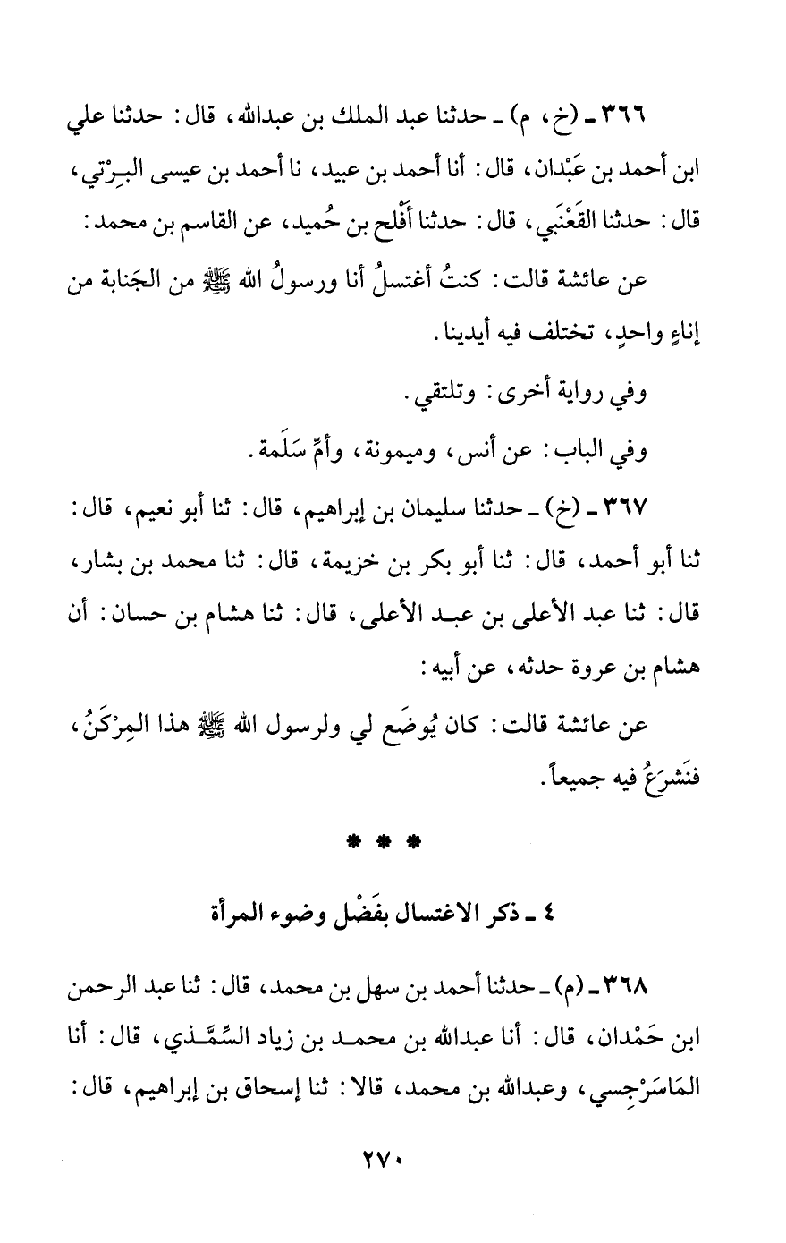 366 - (خ، م) - حدثنا عبد الملك بن عبد الله، قال: حدثنا علي بن أحمد بن عبدان، قال: أنا أحمد بن عبيد، نا أحمد بن عيسى البرتي، قال: حدثنا القعنبي، قال: حدثنا أفلح بن حميد، عن القاسم بن محمد: