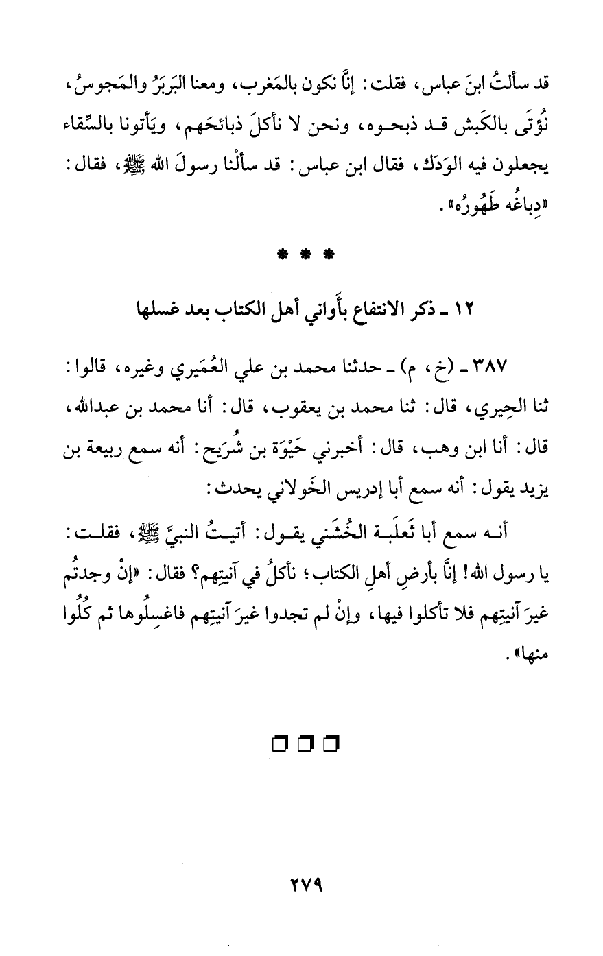 [12] ذكر الانتفاع بأواني أهل الكتاب بعد غسلها