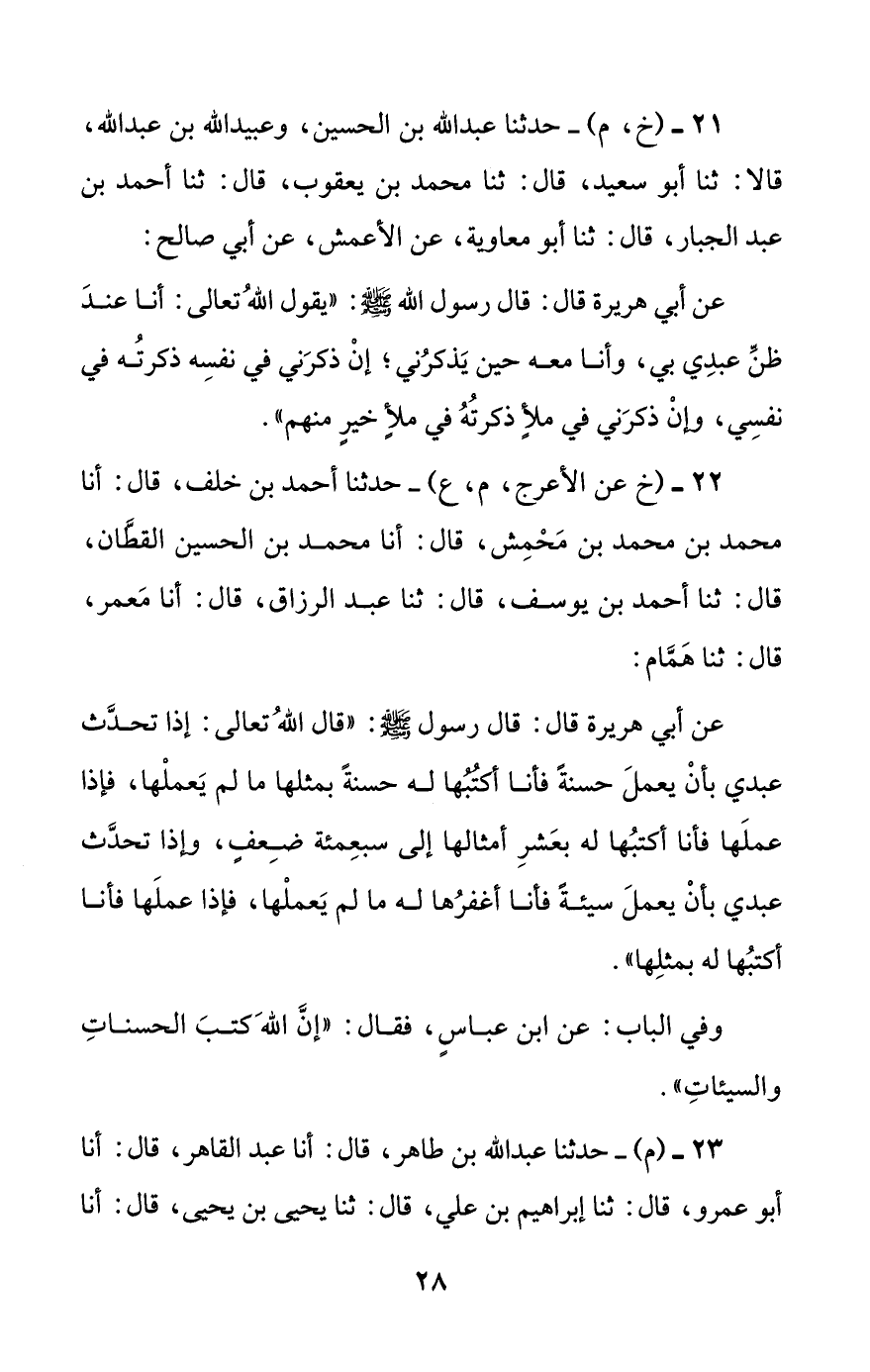 21 - (خ، م) - حدثنا عبد الله بن الحسين، وعبيد الله بن عبد الله، قالا: ثنا أبو سعيد، قال: ثنا محمد بن يعقوب، قال: ثنا أحمد بن عبد الجبار، قال: ثنا أبو معاوية، عن الأعمش، عن أبي صالح: