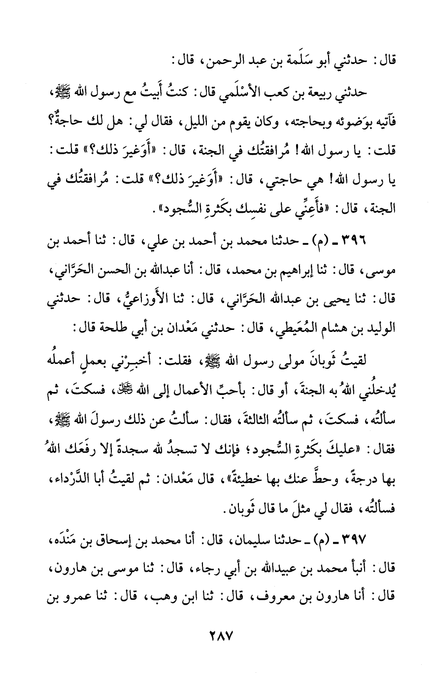 397 - (م) - حدثنا سليمان، قال: أنا محمد بن إسحاق بن منده، قال: أنبأ محمد بن عبيد الله بن أبي رجاء، قال: ثنا موسى بن هارون، قال: أنا هارون بن معروف، قال: ثنا ابن وهب، قال: ثنا عمرو بن #288# الحارث، عن عمارة بن غزية، عن سمي مولى أبي بكر: أنه سمع أبا صالح ذكوان: