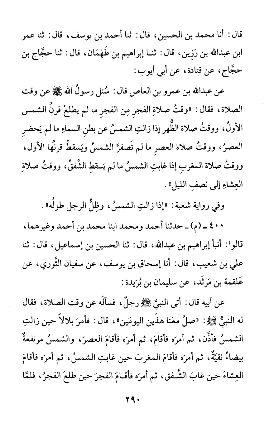 400 - (م) - حدثنا أحمد ومحمد ابنا محمد بن أحمد وغيرهما، قالوا: أنبأ إبراهيم بن عبد الله، قال: ثنا الحسين بن إسماعيل، قال: ثنا علي بن شعيب، قال: أنا إسحاق بن يوسف، عن سفيان الثوري، عن علقمة بن مرثد، عن سليمان بن بريدة: