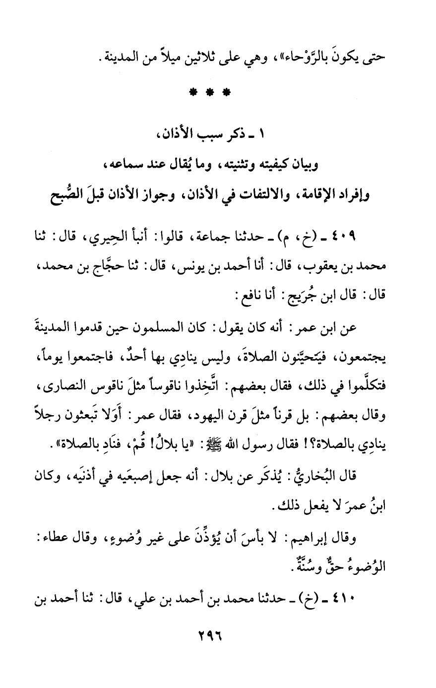 409 - (خ، م) - حدثنا جماعة، قالوا: أنبأ الحيري، قال: ثنا محمد بن يعقوب، قال: أنا أحمد بن يونس، قال: ثنا حجاج بن محمد، قال: قال ابن جريج: أنا نافع: