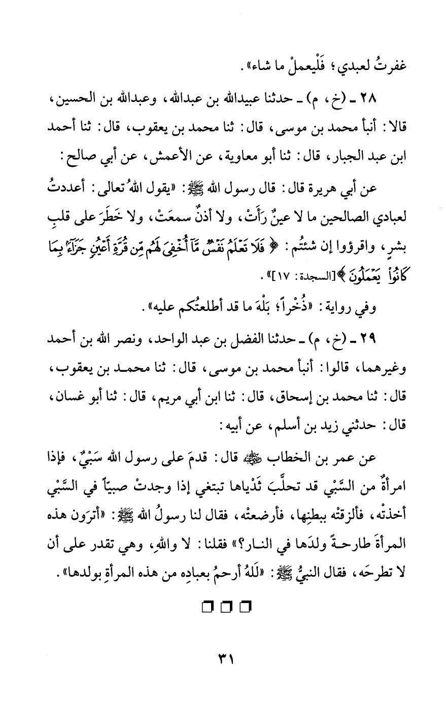 28 - (خ، م) - حدثنا عبيد الله بن عبد الله، وعبد الله بن الحسين، قالا: أنبأ محمد بن موسى، قال: ثنا محمد بن يعقوب، قال: ثنا أحمد بن عبد الجبار، قال: ثنا أبو معاوية، عن الأعمش، عن أبي صالح: