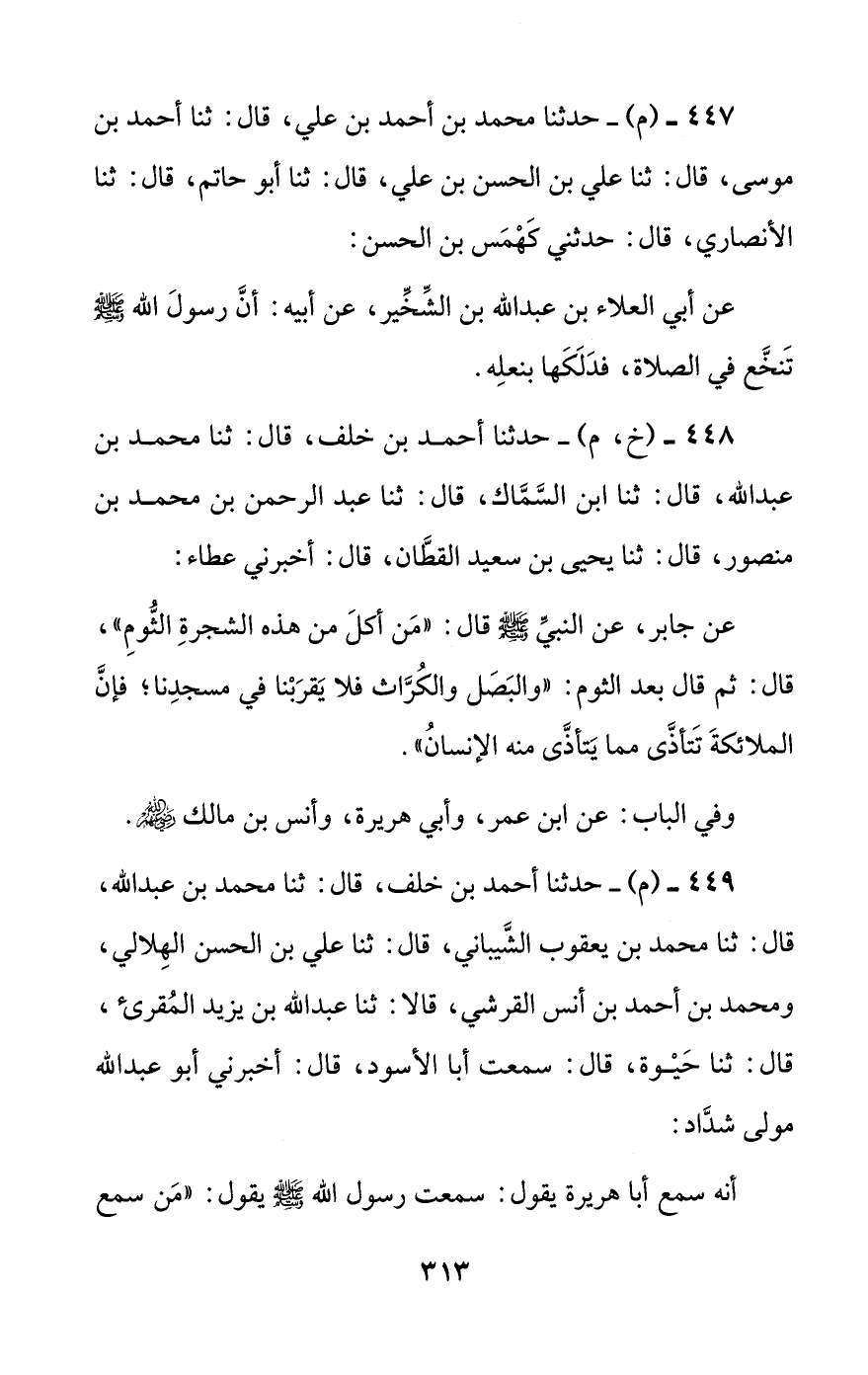 448 - (خ، م) - حدثنا أحمد بن خلف، قال: ثنا محمد بن عبد الله، قال: ثنا ابن السماك، قال: ثنا عبد الرحمن بن محمد بن منصور، قال: ثنا يحيى بن سعيد القطان، قال: أخبرني عطاء: