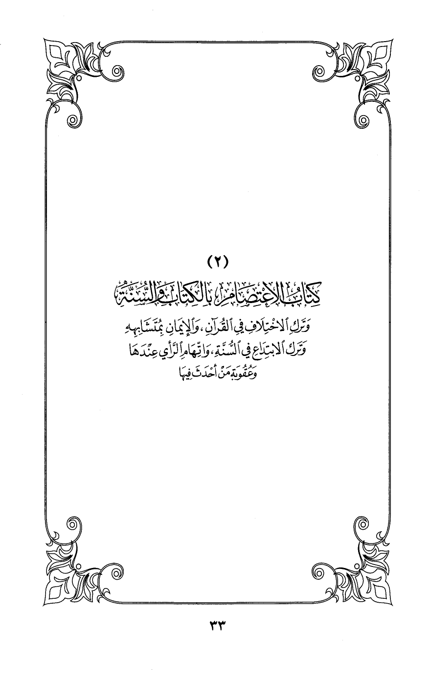 [2] كتاب الاعتصام بالكتاب والسنة وترك الاختلاف في القرآن، والإيمان بمتشابهه وترك الابتداع في السنة، واتهام الرأي عندها وعقوبة من أحدث فيها