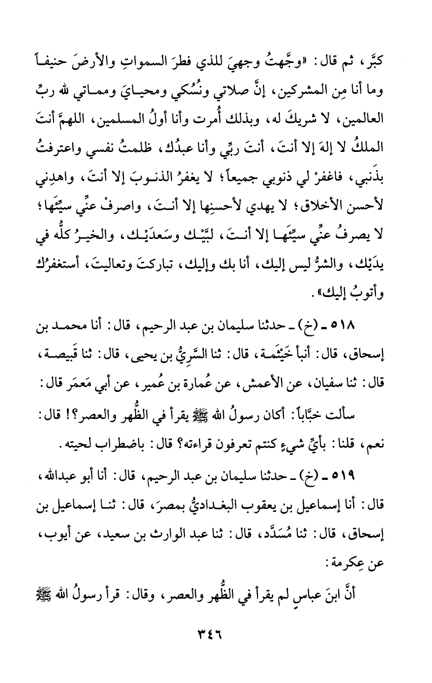 518 - (خ) - حدثنا سليمان بن عبد الرحيم، قال: أنا محمد بن إسحاق، قال: أنبأ خيثمة، قال: ثنا السري بن يحيى، قال: ثنا قبيصة، قال: ثنا سفيان، عن الأعمش، عن عمارة بن عمير، عن أبي معمر قال: