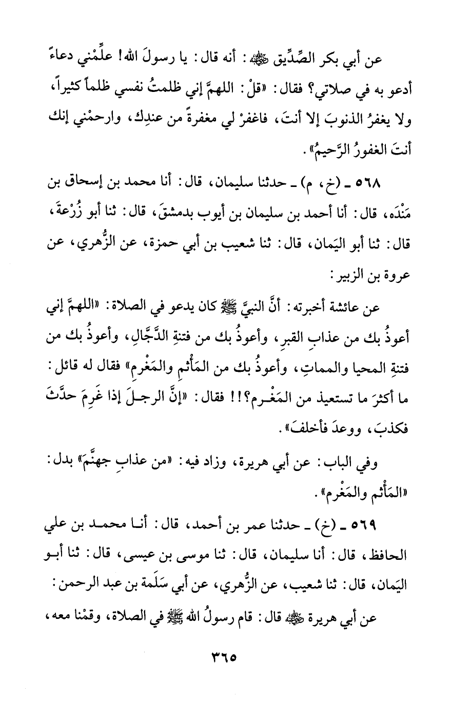 568 - (خ، م) - حدثنا سليمان، قال: أنا محمد بن إسحاق بن منده، قال: أنا أحمد بن سليمان بن أيوب بدمشق، قال: ثنا أبو زرعة، قال: ثنا أبو اليمان، قال: ثنا شعيب بن أبي حمزة، عن الزهري، عن عروة بن الزبير: