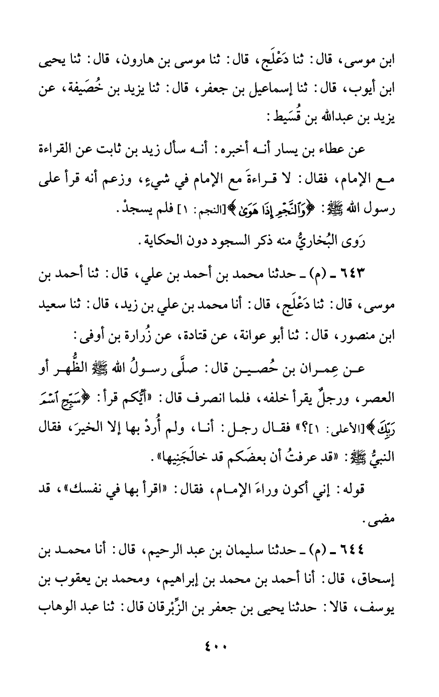 643 - (م) - حدثنا محمد بن أحمد بن علي، قال: ثنا أحمد بن موسى، قال: ثنا دعلج، قال: أنا محمد بن علي بن زيد، قال: ثنا سعيد بن منصور، قال: ثنا أبو عوانة، عن قتادة، عن زرارة بن أوفى: