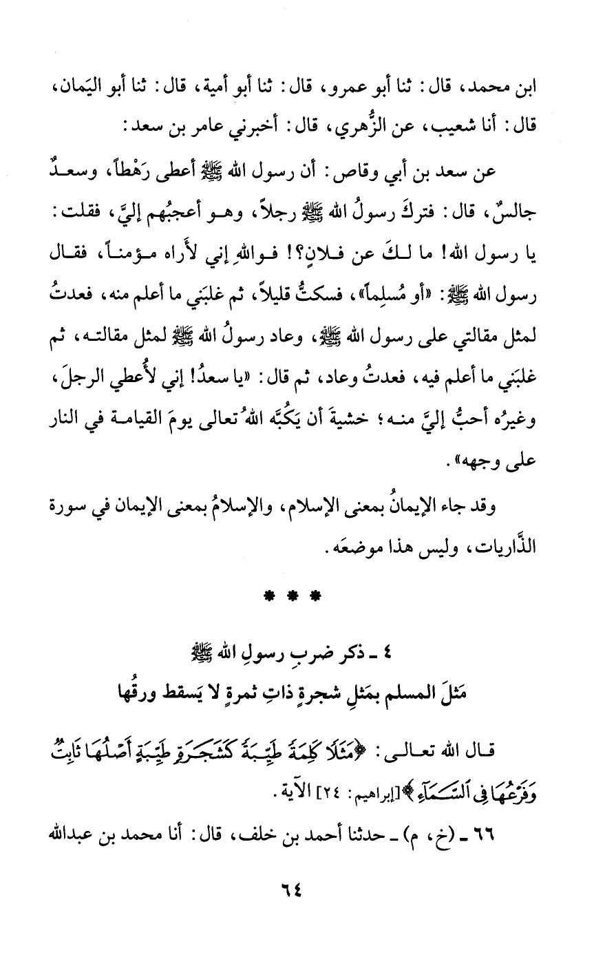 [4] ذكر ضرب رسول الله صلى الله عليه وسلم مثل المسلم بمثل شجرة ذات ثمرة لا يسقط ورقها