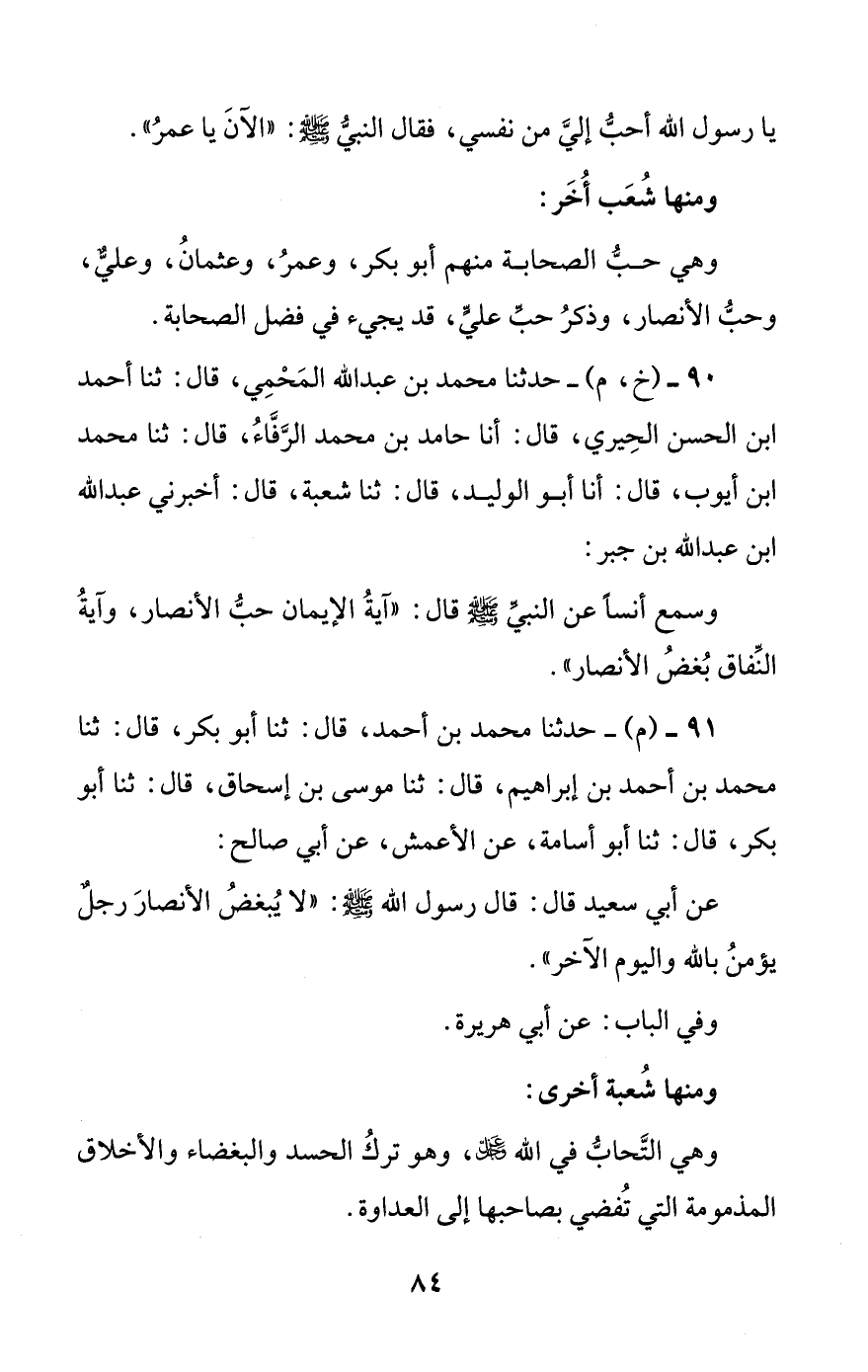 90 - (خ، م) - حدثنا محمد بن عبد الله المحمي، قال: ثنا أحمد ابن الحسن الحيري، قال: أنا حامد بن محمد الرفاء، قال: ثنا محمد بن أيوب، قال: أنا أبو الوليد، قال: ثنا شعبة، قال: أخبرني عبد الله ابن عبد الله بن جبر:
