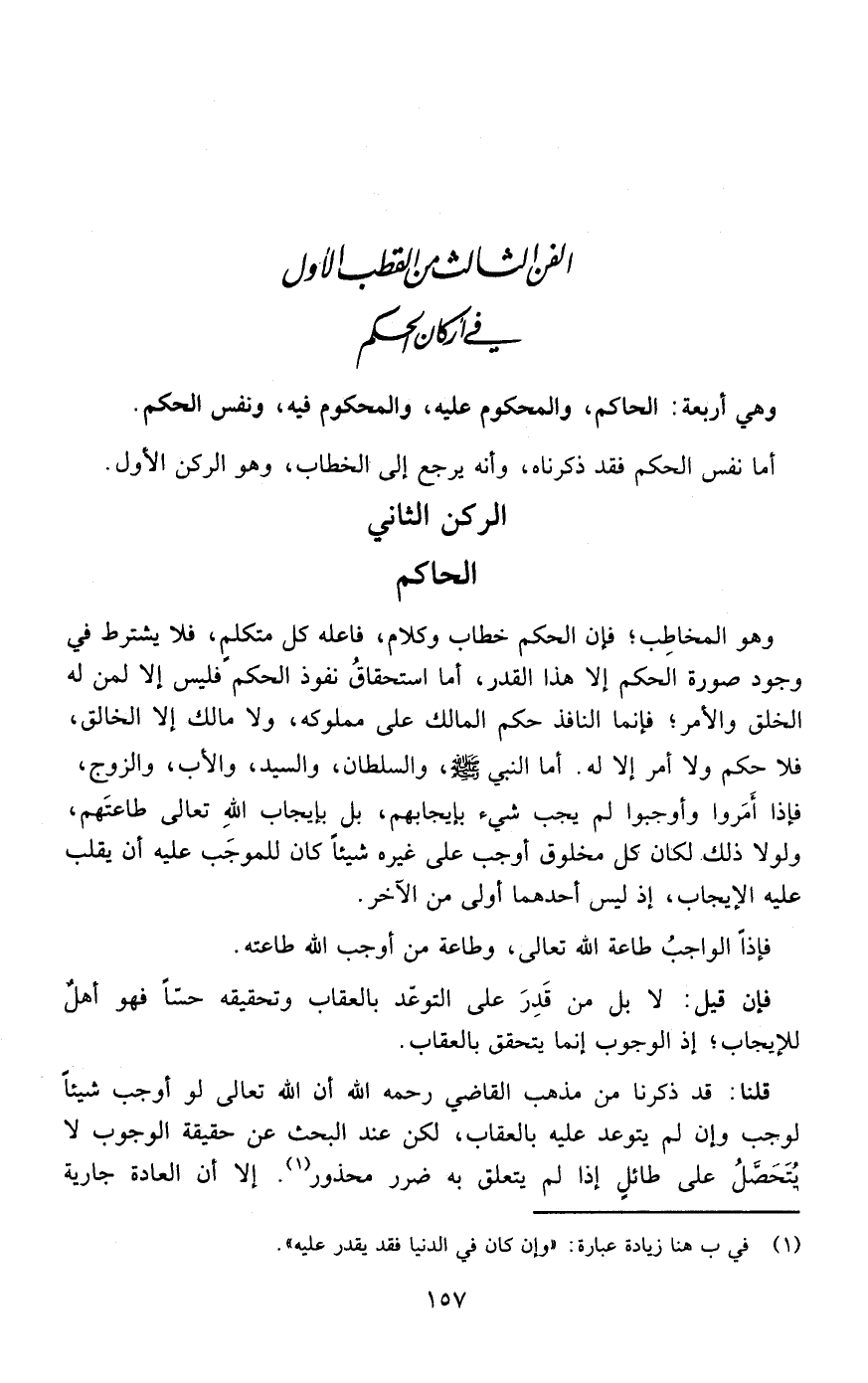وهو المخاطب فإن الحكم خطاب وكلام فاعله كل متكلم فلا يشترط في وجود صورة الحكم إلا هذا القدر أما استحقاق نفوذ الحكم فليس إلا لمن له الخلق والأمر فإنما النافذ حكم المالك على مملوكه ولا مالك إلا الخالق فلا حكم ولا أمر إلا له أما النبي والسلطان والسيد والأب والزوج فإذا أمروا وأوجبوا لم يجب شيء بإيجابهم بل بإيجاب الله تعالى طاعتهم ولولا ذلك لكان كل مخلوق أوجب على غيره شيئا كان للموجب عليه أن يقلب عليه الإيجاب إذ ليس أحدهما أولى من الآخر فإذا الواجب طاعة الله تعالى وطاعة من أوجب الله تعالى طاعته