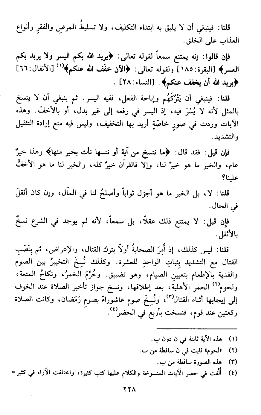 فإن قالوا :إنه يمتنع سمعا لقوله تعالى { يُرِيدُ اللَّهُ بِكُمُ الْيُسْرَ وَلا يُرِيدُ بِكُمُ الْعُسْرَ } [ البقرة: من الآية185]ولقوله تعالى {يُرِيدُ اللَّهُ أَنْ يُخَفِّفَ عَنْكُمْ }[ النساء: من الآية28]