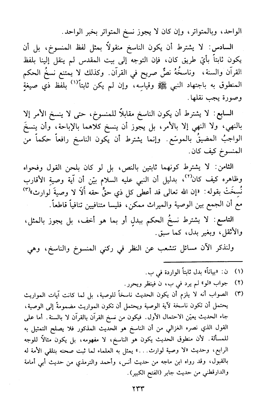 ولنذر الآن مسائل تتشعب عن النظر في ركني المنسوخ والناسخ وهي