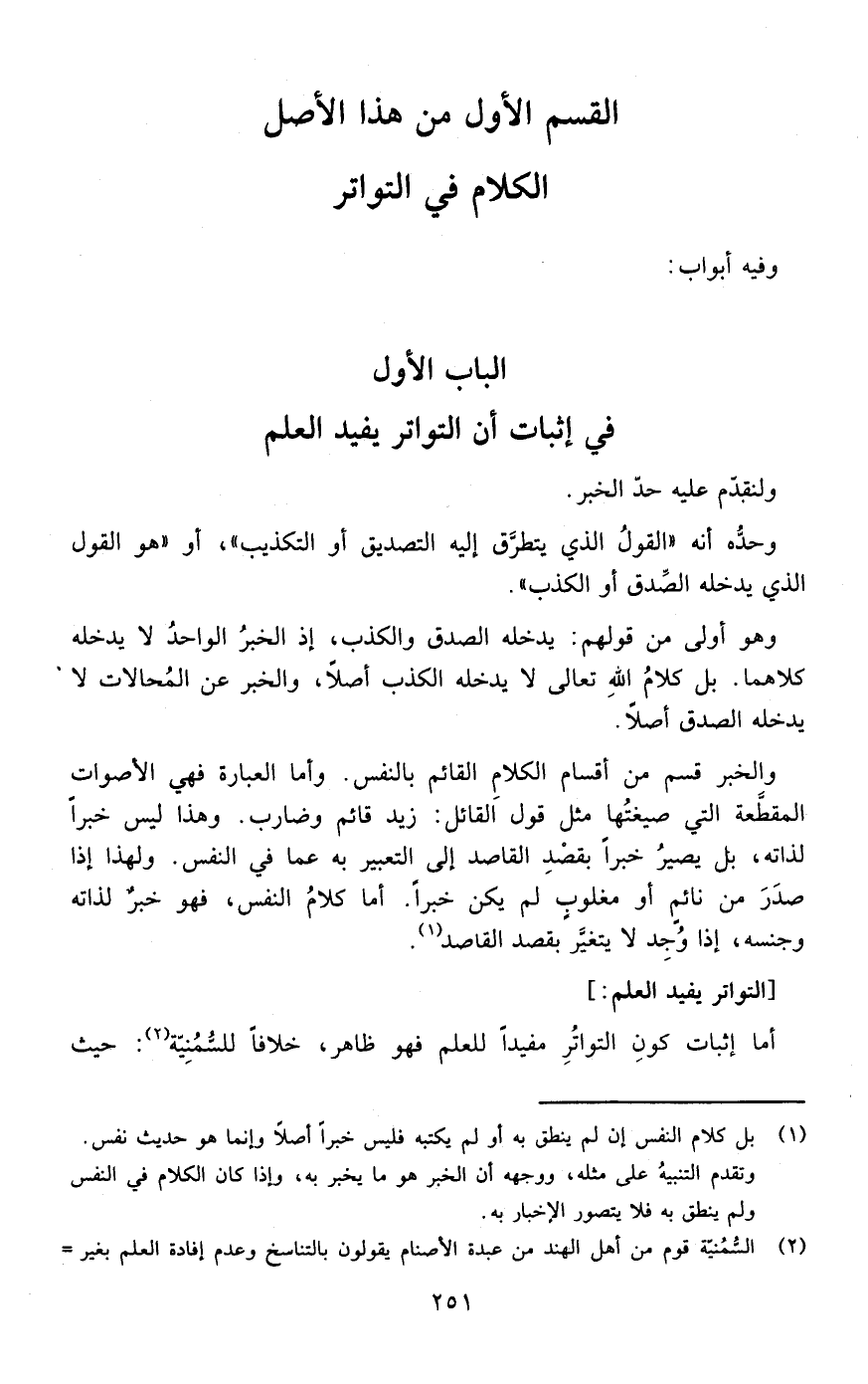 الباب الأول في إثبات أن التواتر يفيد العلم