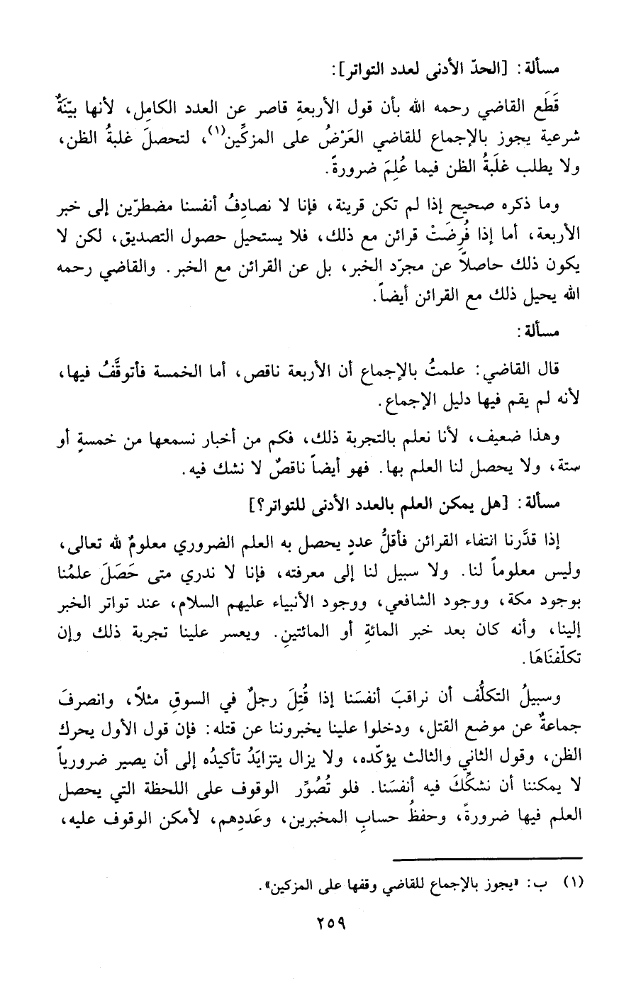مسألة: العدد الذي يفيد التواتر؟: