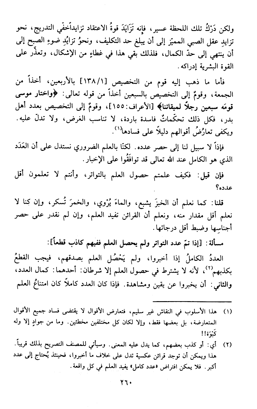 فإذا لا سبيل لنا إلى حصر عدده لكنا بالعلم الضروي نستدل على أن العدد الذي هو الكامل عند الله تعالى قد توافقوا على الإخبار