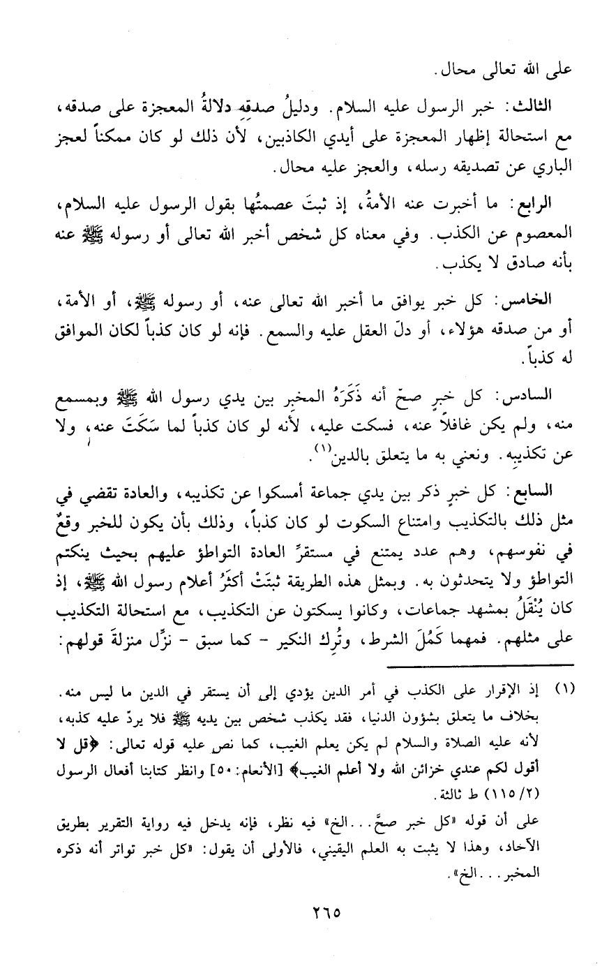 الرابع: ما أخبر عنه الأمة إذ ثبت عصمتها بقول الرسول صلى الله عليه وسلم المعصوم عن الكذب وفي معناه كل شخص أخبر الله تعالى أو رسوله صلى الله عليه وسلم عنه بأنه صادق لا يكذب